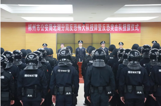10月22日上午,郴州市公安局北湖分局举行反恐怖大队授牌暨反恐怖突击队授旗仪式。