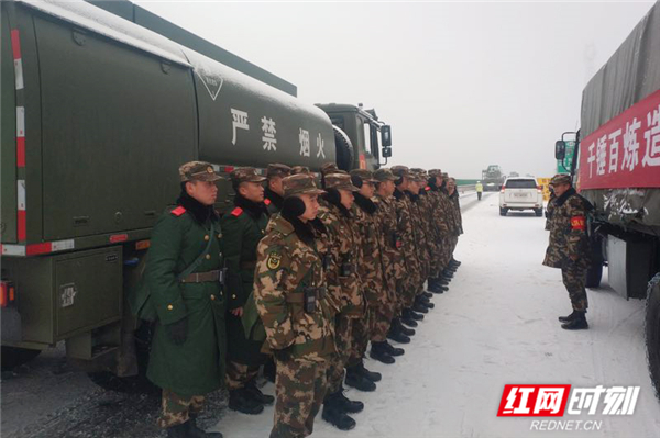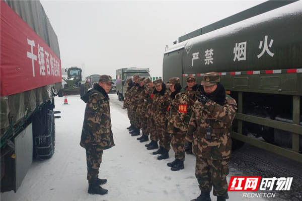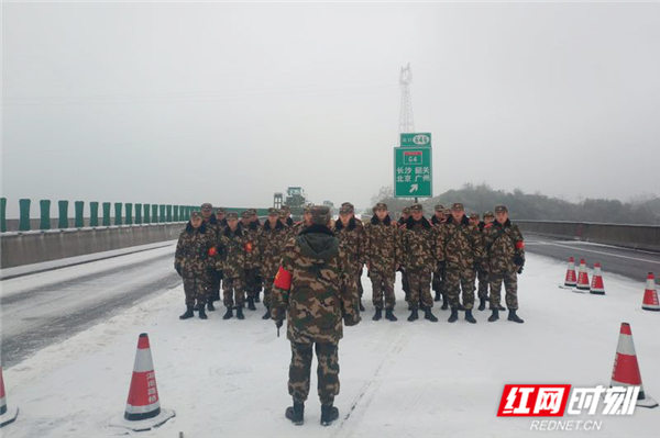 30日下午18时许,接到郴州市政府用兵请求后,正在筹备冬季野营拉练的武警某部交通第一支队四大队迅速启动应急响应机制,完成战备等级转进,进入实战状态。当晚23时,任务部队16名官兵携4台机车装备赶赴G4高速受灾路段。经过5小时连夜奋战圆满完成了除雪保通任务。