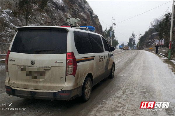12月31日,临武公安在S324线结冰路段铲雪撒盐,由于道路结冰,s324线花塘至万水醉乐亭路段已实行交通管制。