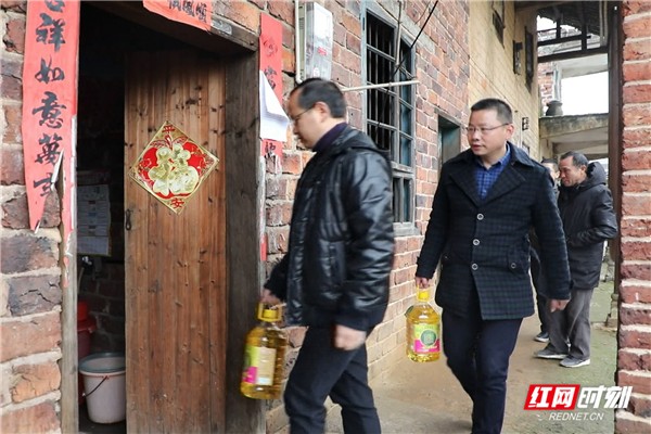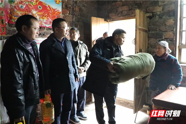 近期出现的低温冰冻天气给贫困群众生产生活带来不利影响,12月31日下午,永兴县发改局扶贫干部深入金龟镇香梅村,先后来到所联系的82户贫困户家中,为他们送上食用油、棉被等物资,并指导雨雪冰冻天气应对工作,帮助困难群众温暖过冬。