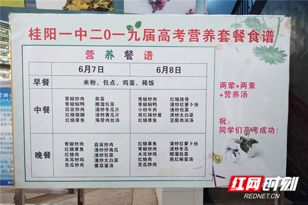 红网时刻6月4日讯 (通讯员 王成家)“我们每天采购新鲜优质的食材、精心设计营养套餐,力争让考生吃得好、吃得放心!”提及即将到来的2019年高考,桂阳县第一中学食堂司务长邓启权信心满满。