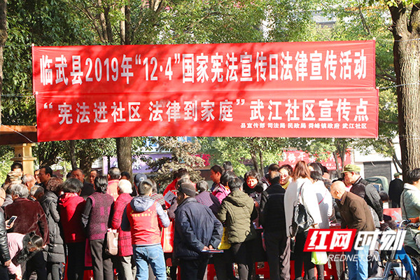 12月4日,临武县在舜峰镇武江社区、东云社区等处开展了国家宪法宣传日法律宣传活动。