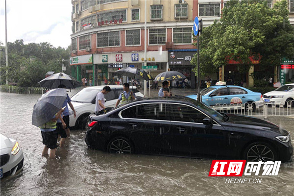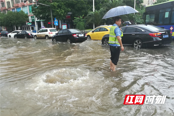 红网时刻6月3日讯(通讯员 肖曼婕)自6月以来,郴城连续降雨导致市城区多条路段积水严重,形成内涝,市城区交通秩序面临严重压力。其中,市城区低洼地段积水严重,为及时化解交通压力,一大队交警24小时处于执勤状态,一有险情便能及时出现在每一个最应该出现的地方。