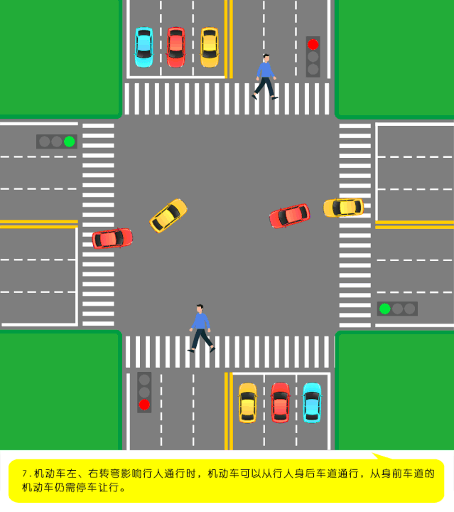 (三)在交通信号灯控制的路口,当机动车车道信号灯转为绿灯时,行人尚未完全通过人行横道,未停车让行的。