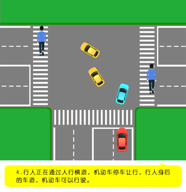 (四)在交通信号灯控制的路口,准许车辆转弯和行人直行时,转弯的机动车妨碍行人通行的。