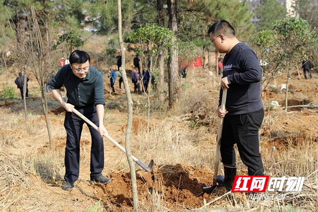 红网时刻2月20日讯 (通讯员 胡喜华 黄芳)春回大地,万物复苏。2月18日下午,宜章县400余名干部群众来到玉溪镇廖家湾村,开展全民义务植树活动,以实际行动为宜章再添新绿,共建绿色家园。大家拿着铁锹或锄头,分工协作,相互配合,扶苗培土,合力栽下一株株树苗,种下新年的希望。经过一番辛勤劳作,大家合力种下了樟树、桂花树、柏树等1600余株树苗,造林面积达30余亩。