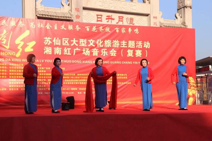 12月23日,暖阳和煦,千年古街裕后街牌坊广场再次搭起红色的百姓大舞台——苏仙区大型文化旅游主题活动湘南红广场音乐会(复赛)在这里隆重举行。附近的市民闻“乐”而来,或席地而坐,或驻足翘首会心欣赏一场接地气、高规格的文艺演出,大家满心欢喜地度过一个热闹而欢快的冬日午后。
