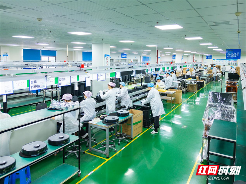 近日,在湖南炬神电子有限公司的生产车间里,流水线高速运转,指示灯闪烁不停,工人们正全神贯注地对刚下线的智能扫地机进行精度校准、功能测试等一系列严苛检验。不久后,这批价值500余万元的智能家居新品,将搭乘跨境电商的快车进入欧美市场。