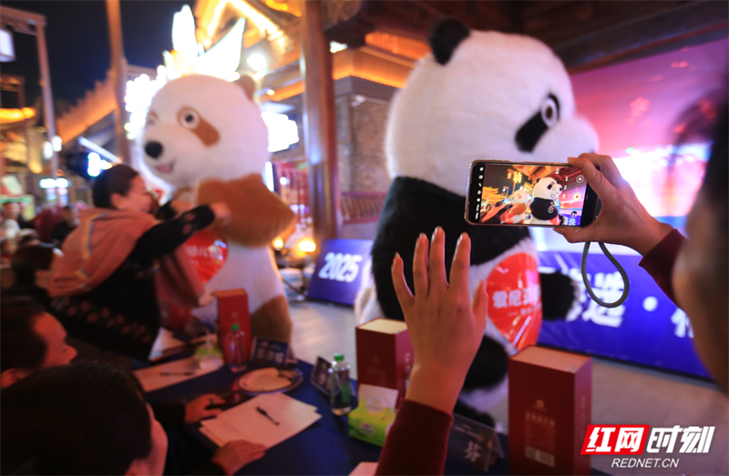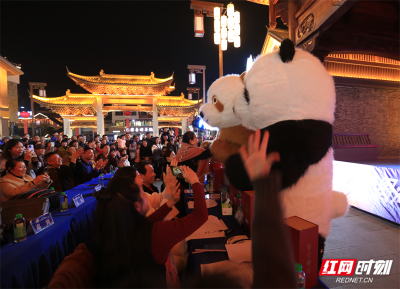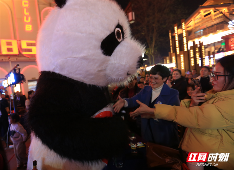 红网时刻新闻1月19日郴州讯(通讯员 黄建华)1月17日晚,郴州市裕后街裕后里,一对“功夫熊猫”表演吸引市民和游客互动。街区内的萌趣互动吸睛,造型逼真的功夫熊猫玩偶空降现场,为周末文艺之夜增添了别样欢乐。伴随着欢快而富有节奏的音乐,“功夫熊猫”的动态表演,滑稽可爱,引来围观群众的阵阵掌声与笑声。