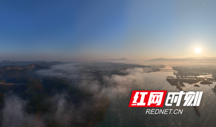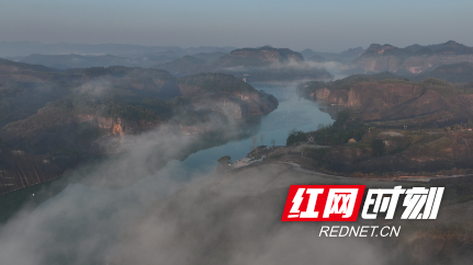 红网时刻新闻1月10日讯(通讯员 黄建华)1月9日清晨,郴州市飞天山国家地质公园如梦似幻的云雾美景宛如仙境。无人机俯瞰丹霞地貌,层层云雾缠绕在丹霞之间,薄薄的平流雾时而上升,时而下坠,时而回旋,时而舒展,一幅秀美的水墨丹霞山水画卷徐徐展开。