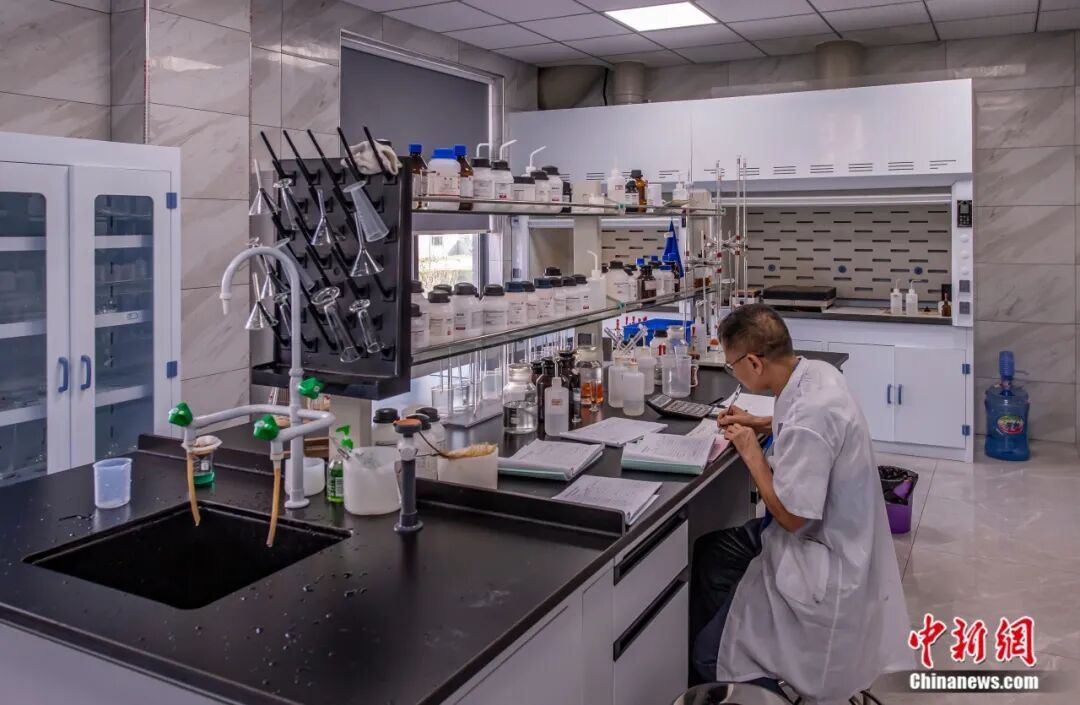 永兴县一稀贵金属回收企业化验员在记录化验报告。永兴县委宣传部供图