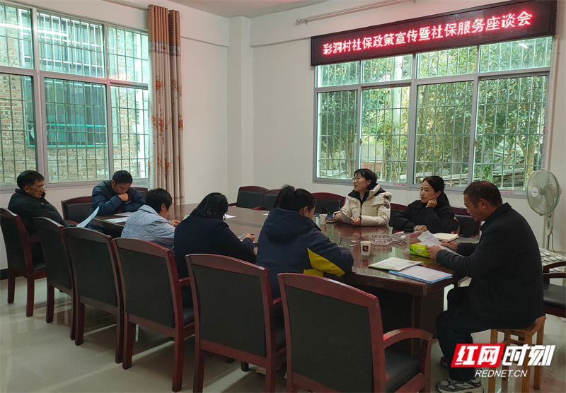 社保工作人员到彩洞瑶族村宣传。