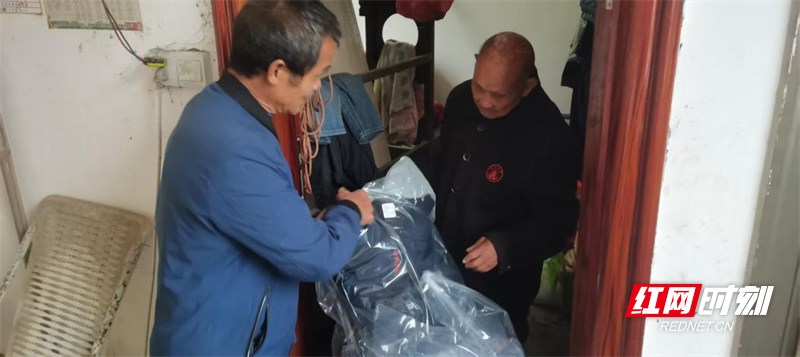 “多亏了党和政府惦记!”寒潮来临前,郴州市资兴市三都镇鹿东村独居老人袁大爷,穿上资兴市民政局送来的厚棉衣、棉鞋,工作人员还帮他检查了取暖设备和用电安全,老人连声道谢。