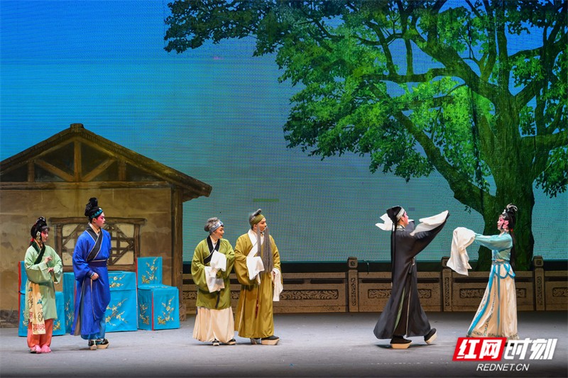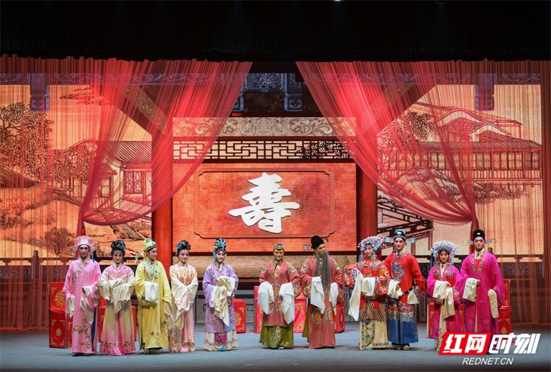 红网时刻新闻1月5日郴州讯(通讯员 朱孝荣 李强辉 樊钰慧)1月4日晚,由资兴市委托湖南艺术职业学院定向培养的五年制花鼓戏大专班毕业展演在资兴剧院拉开帷幕。15名青年学生与资兴市文化馆的“老戏骨”们联袂登台,为观众表演了一场经典花鼓戏《五女拜寿》。观众们纷纷表示,这场演出既彰显了传统艺术的独特魅力,又弘扬了“忠孝节义”的传统美德,让大家在欣赏艺术的同时,也接受了一次深刻的思想教育。