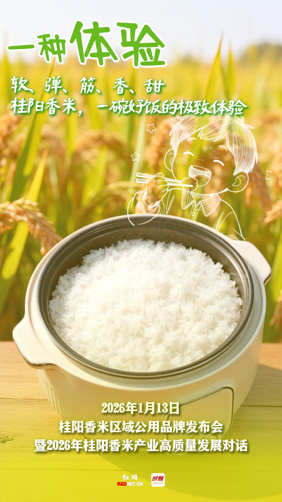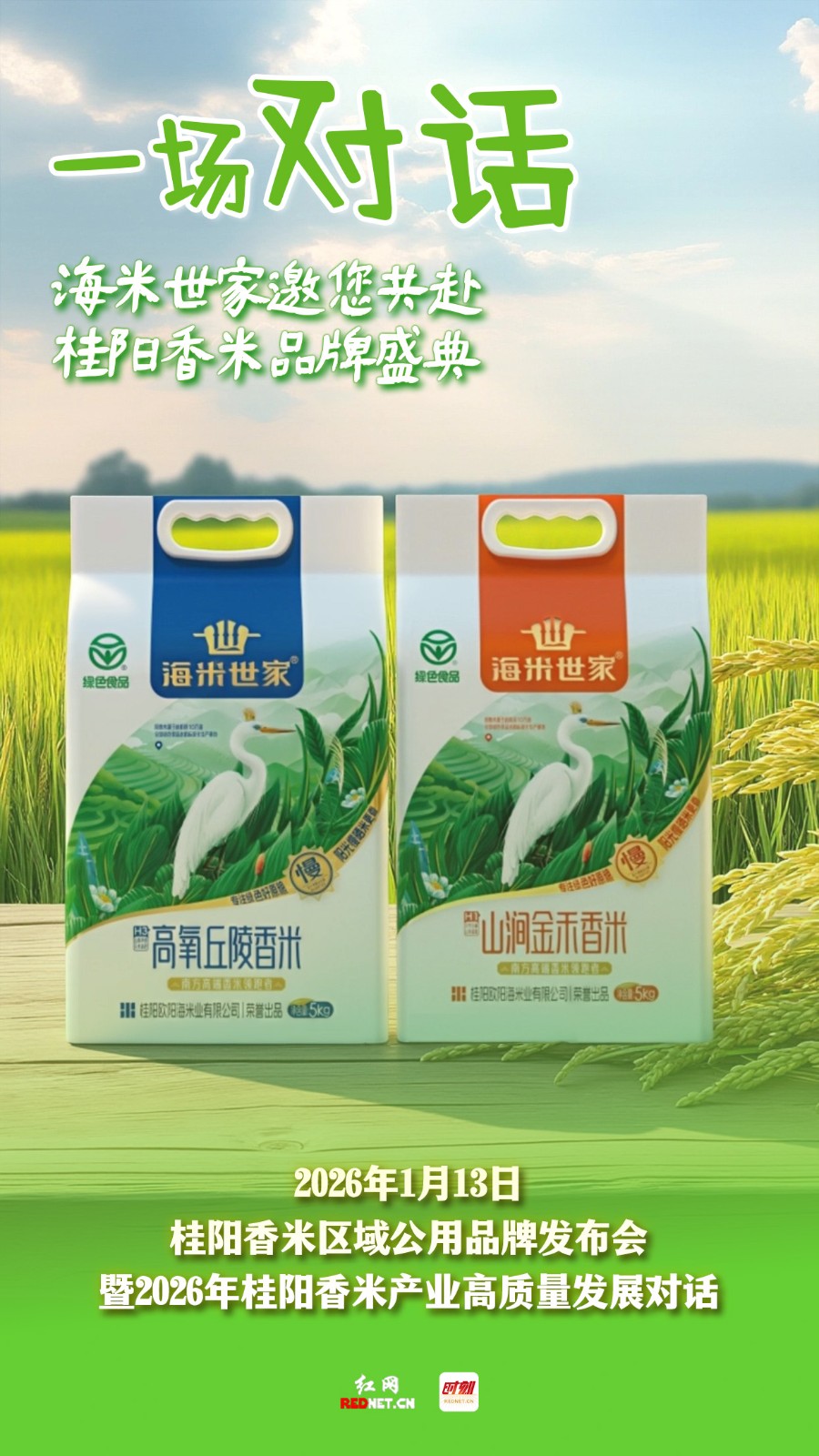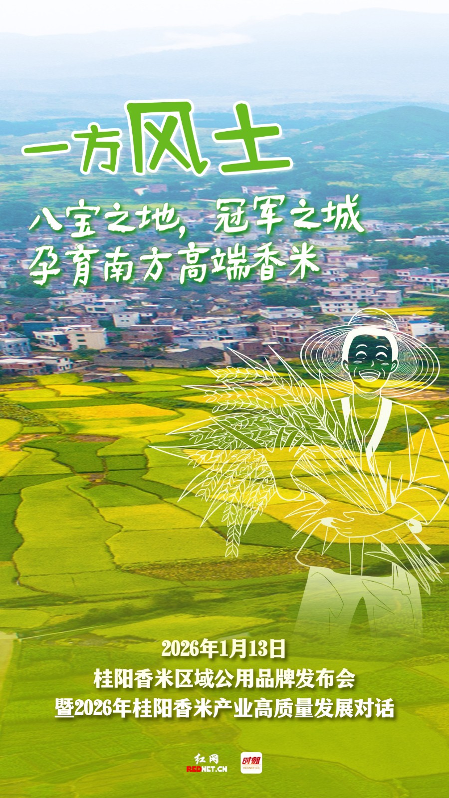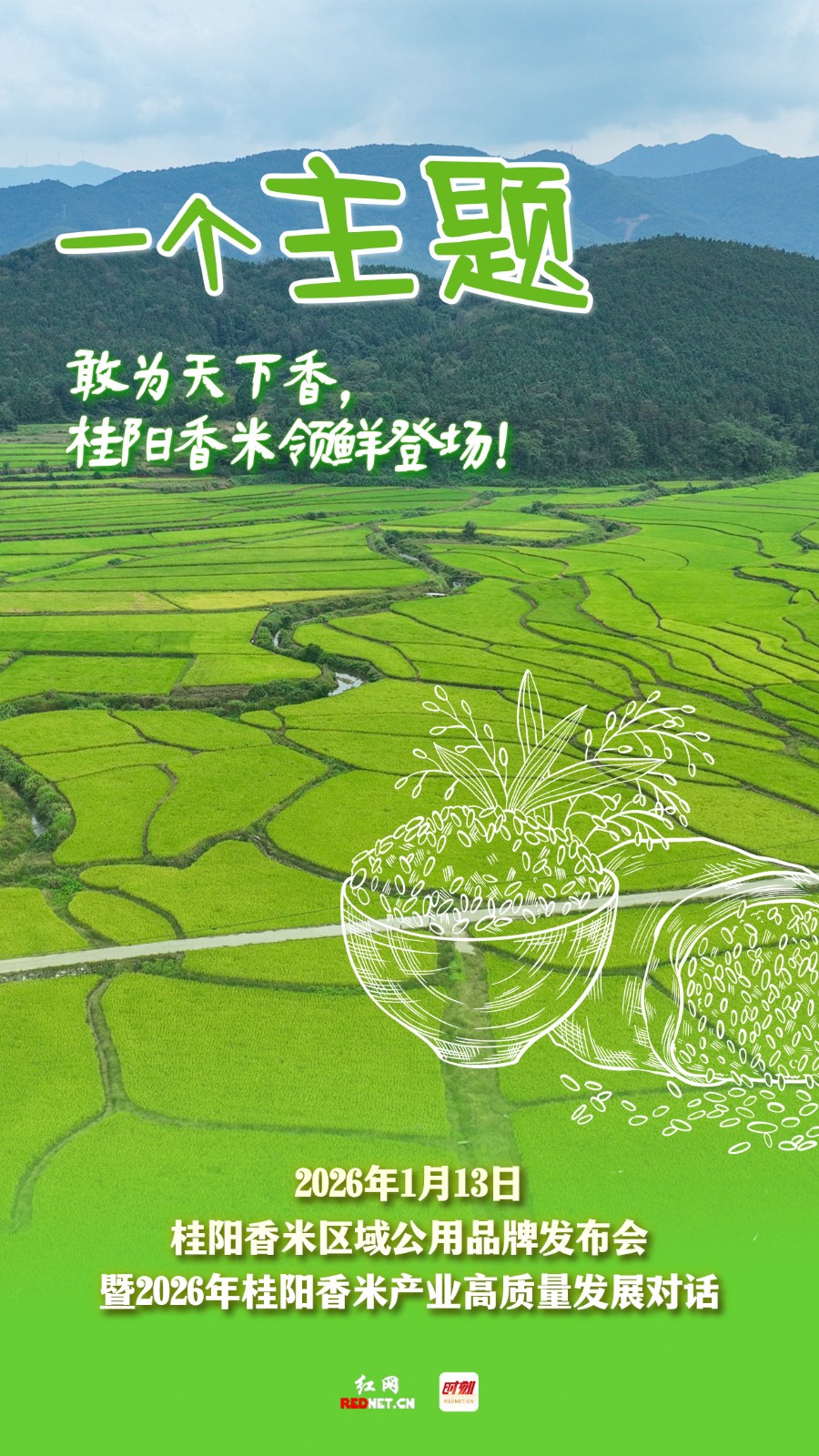 编者按:一碗好米,敢为天下香。1月13日,桂阳香米区域公用品牌即将正式发布。这既是对千年风土的致敬,更是对未来发展的庄严宣告。从生态种植到产业振兴,从湘米出湘到乡村振兴,我们以米为媒,共话高质量发展新篇章。诚邀您见证这一刻,让桂阳香米,香飘万里。