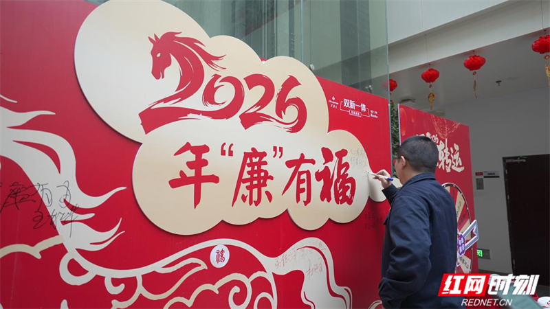 “年廉有福”主题展板前同样人气满满。各部门中层管理人员、关键岗位人员带头签名立诺,写下廉洁寄语,用简单的文字传递廉洁初心,让“以廉为荣、以洁为美”的理念在新春里扎根心间,让廉洁清风成为新春最美的底色。