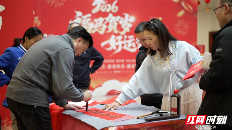 活动现场翰墨飘香、暖意融融,书法爱好者们大显身手,毛笔在红纸上飞舞,一副副寓意吉祥的春联、一个个饱含祝福的“福”字和象征廉洁的“廉”字跃然纸上,员工们把满满的新春福运和廉洁期许捧在手中,喜庆祥和的节日氛围拉满。
