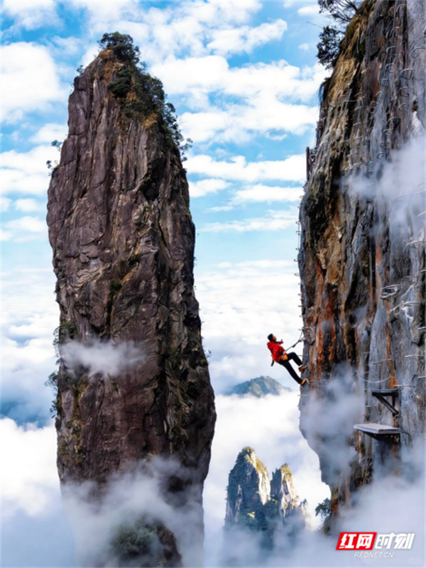 莽山五指峰:流量团队与工程队同期进场,在产品设计阶段,就把“传播点”焊进钢筋水泥。飞拉达的选址,团队勘测了三个月。不是因为地质复杂,而是为了找到那个角度:游客攀爬时,刚好能与景区标识性景点——金鞭神柱同框。