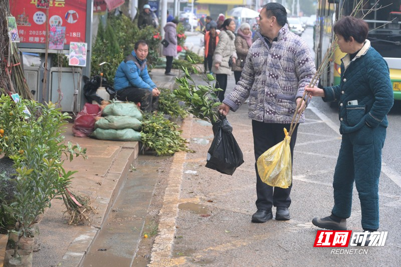 红网时刻新闻2月15日郴州讯(通讯员 何炳文)“春节期间好栽树”的理念已在安仁县城乡形成新潮流。瞧,位于安仁县城农贸市场旁的苗木交易伴随着新年春节来临,变得格外火热起来。城乡群众在购买年货的同时,纷纷到这里选购被喻为“绿色年货”的苗木果树,一株株、一捆捆油茶树苗、水果树苗等被带回家里。