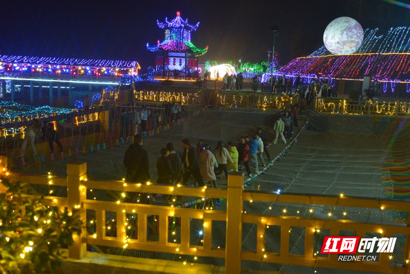红网时刻新闻2月22日郴州讯(通讯员 何炳文)新年春节期间,一场以“夜游、夜演、夜娱、夜食”一站式休闲观光的“迎春灯会”,在安仁县永乐江镇山塘村的“神农谷农耕文化园”开启以来,与山清水秀的美丽乡村相融成景,引爆了春节假期“乡村游”热潮。从本地及周边县成千上万的大人小孩坐着大车小车,川流不息涌入山塘村。