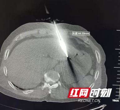 刀身贯穿患者肝脏。