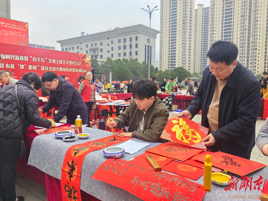 “晋福进万家”活动,由郴州市委宣传部(市文明办)、苏仙区委宣传部(区文明办)、郴州市博物馆、湖南日报社郴州分社等单位联合推动。活动现场,来自郴州市博物馆的书法老师依据“镇馆之宝”西晋简牍中的字体,为市民书写春联和“福”字,送去新春的祝福。