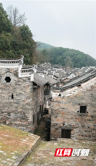 漫步青石板街巷,指尖抚过门楣上的砖雕,仿佛能触碰到时光的温度。村中现存31处明清钱庄、私塾与商铺,其木构架采用“穿斗式”技法,榫卯咬合间不见铁钉;石础雕刻貔貅镇宅,窗棂镂空出“八仙过海”,砖墙以糯米、桐油、灰浆黏合,历经600多年风雨仍坚固如初。排水沟藏在条石下,暴雨时水声汩汩却不见积水。松风私塾、古钱庄、箭楼、望夫亭点缀其间,共同构成一座“活态的湘南建筑博物馆”。