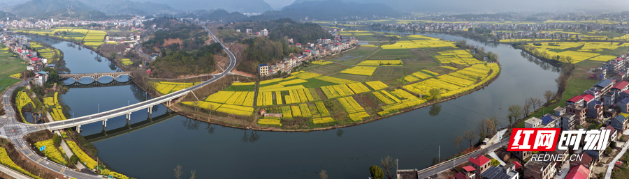 伴着春光春风,沿着安仁县碧波荡漾的“永乐江国家湿地公园”,走进地处上游的牌楼乡境内,映入眼前的是:新修的两岸护堤坚固美观,沿江两岸12个村遍布田园种植的2万余亩油菜花盛开。一丘丘、一片片让永乐江披上了如诗如画的“黄金带”,与美丽乡景,深厚乡愁和谐相融成“江在村中流,家在绿中居,人在花中行”的新春景。