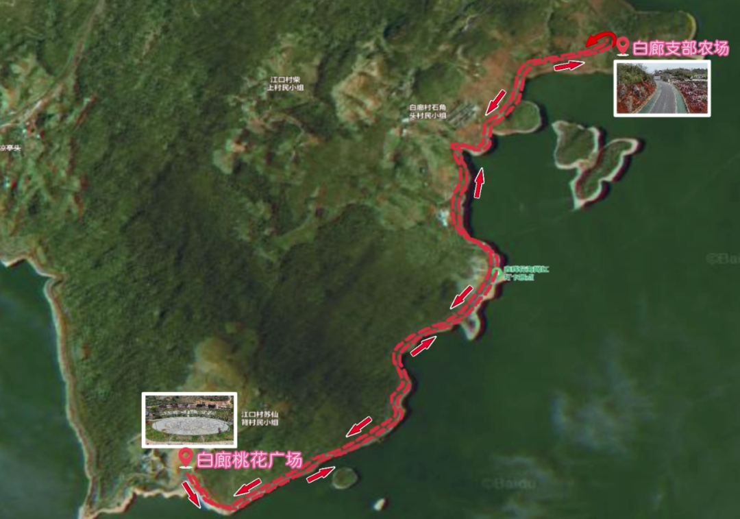 地点:资兴市白廊镇环湖公路桃花广场⟷白廊村支部农场(往返共8公里)