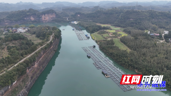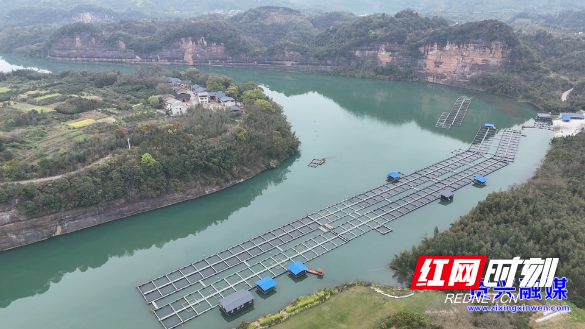 大王寨村地处我市西部,毗邻飞天山景区,以丹霞地貌为主,被誉为“建在石头上的村庄”。这里交通便利,郴永大道与资五公路穿境而过,东江、翠江、便江三江环绕,拥有优质的水域资源,这里水质优良、水温适宜,为鲟鱼生长提供了得天独厚的自然条件。2024年以来,该村以水域、土地资源入股,与市成诚公司合作开发大水面养殖,构建起“企业+村集体+农户”的利益联结机制。目前基地拥有700多口养殖网箱,年产值达5000万元以上,村集体经济年增收30余万元。