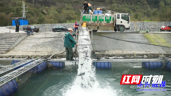 红网时刻新闻3月23日郴州讯(通讯员 胡恒珲 黄好利 李铁南)近日,在资兴市唐洞街道大王寨村程江老渡口鲟鱼养殖基地,湖南东江湖生态渔业发展有限公司的运输车稳稳停靠岸边,一尾尾鲜活的西杂鲟鱼苗顺着卸鱼槽滑入东江水域,溅起层层银浪,呈现一派繁忙景象,昔日寂静的老渡口,因鲟鱼养殖重获新生。