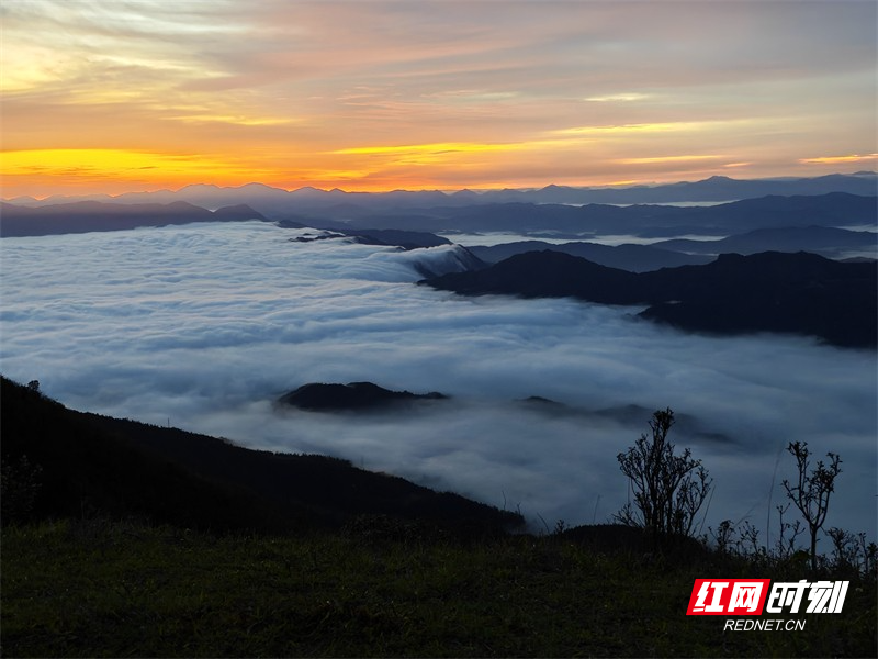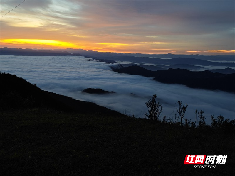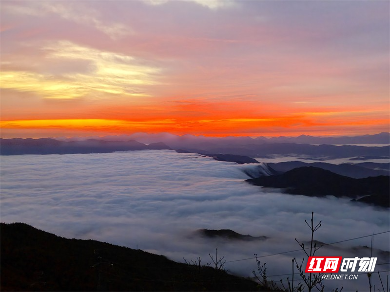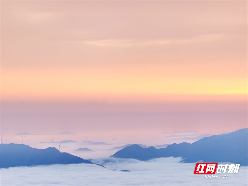 4月4日清晨,海拔1600余米的汝城县井坡镇白云仙,上演绝美云海日出奇观。晨曦微露,霞光漫染天际,万顷云海在山谷间铺展,群山与风车相映成景。旭日东升,金光倾泻,云海如波涛奔涌,气势磅礴。光影变幻间,尽显湘南高山的灵秀壮美,勾勒出一幅生态优美、诗意盎然的春日画卷。