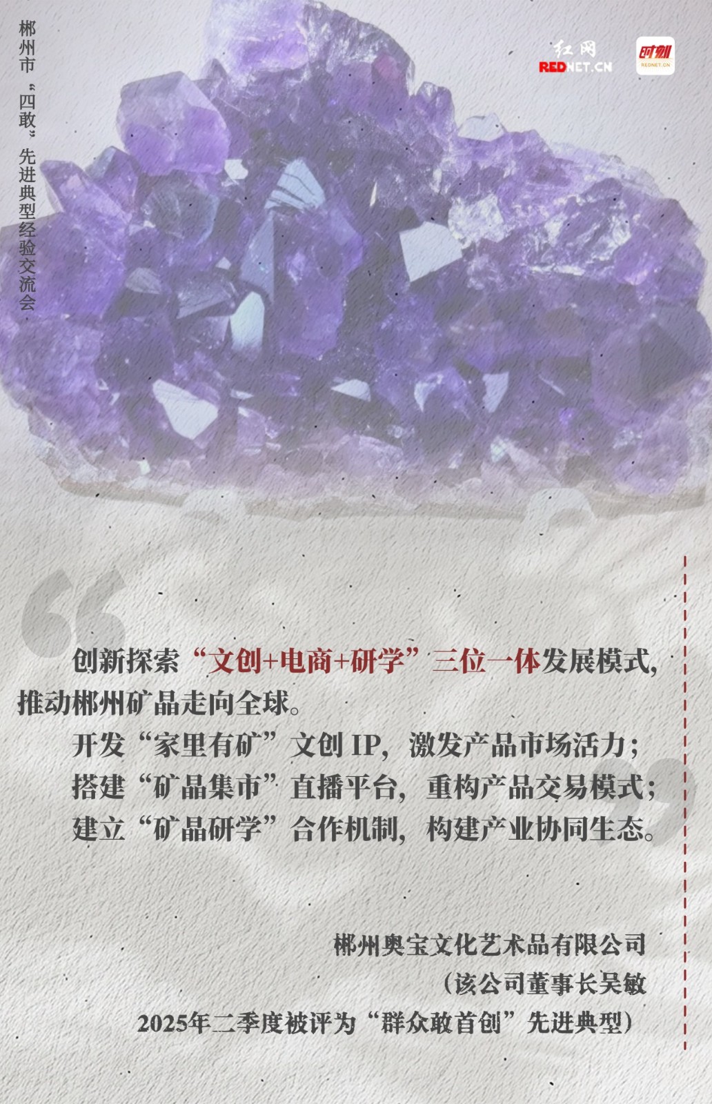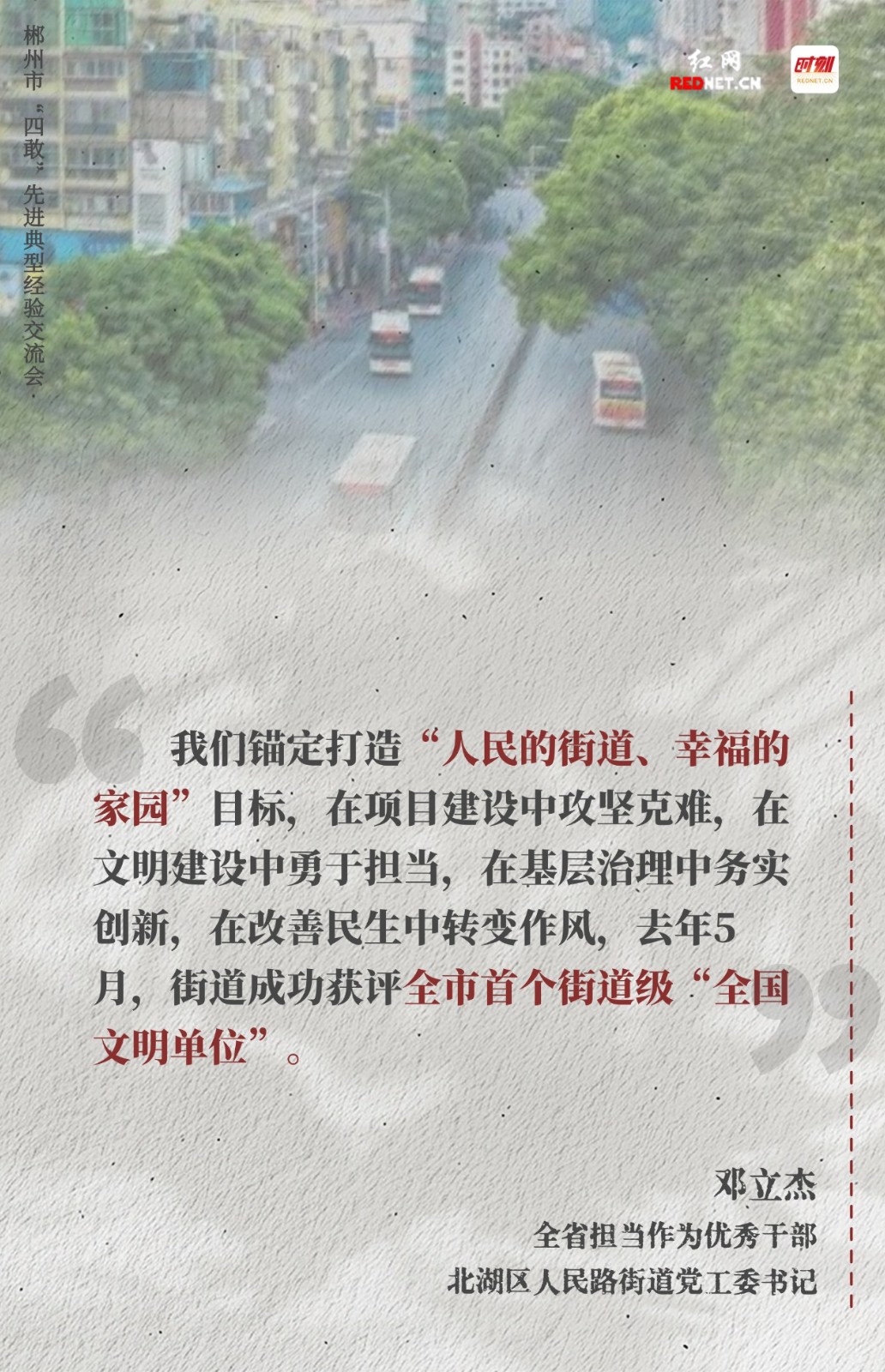 2023年春天,郴州市委、市政府出台《关于创造“四敢”环境 加快推进郴州高质量发展的意见》,启动“四敢”评选。三年来坚持一季一评,共推出 417 个“四敢”先进典型,引领了观念之变,推动了发展之变,实现了能力之变,促进了作风之变。
