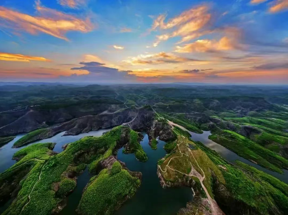 飞天山翠江,丹霞赤壁与碧波翠江交融,还有仙侠 NPC 互动,刚举办完湖南省龙舟邀请赛。