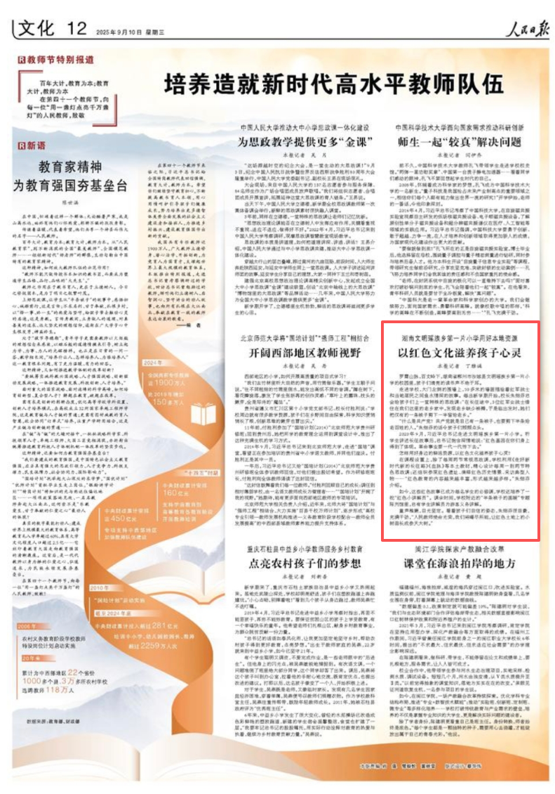 童声稚嫩,目光坚定。看着孩子们自信的姿态,朱细芬很自豪,充满干劲,“人民教师使命光荣,我们将竭尽所能,让红色土地上的小树苗长成参天大树。”