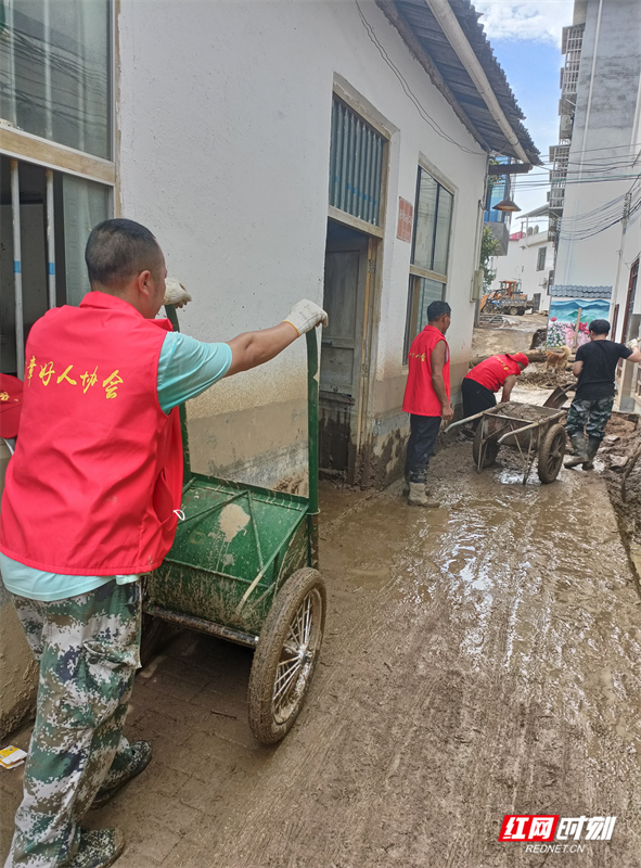 8月14日,天降大雨,莽山瑶族乡西岭村泥石流滚滚,漫卷了村庄的三分之一,有些地方泥砂两米多深。谭志孝带领好人们,连续清运泥砂三天。70多岁老人谭泽民,家里冲进一块巨石,目测重达五六吨,20多人一齐使劲推,半个多小时把巨石“请出屋”。
