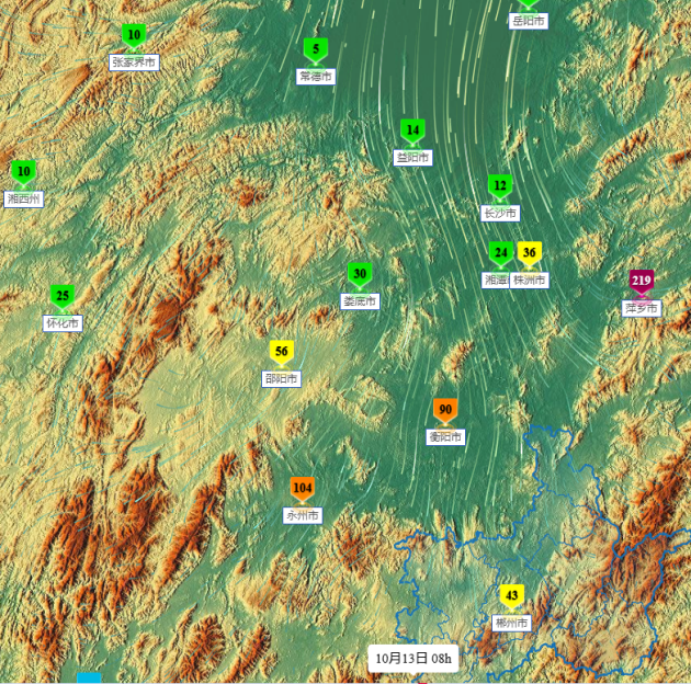 受北部地区焚烧、本地污染持续累积和不利气象条件共同影响,10月10日以来,我省由北向南依次经历了污染天气过程。11日,益阳中度污染,湘潭、长沙轻度污染;12日,株洲重度污染,湘潭、长沙、岳阳中度污染,益阳、衡阳轻度污染。今天上午8时,污染团已陆续进入郴州市城区,11时AQI浓度为117,pm2.5小时浓度为88微克/立方米,小时值已达轻度污染。根据市空气质量最新预报会商结果,预测郴州市13日空气质量日均轻度污染,14日-16日高湿静稳,污染物可能持续滞留、累积,造成连续污染天气,将影响广大市民呼吸健康。