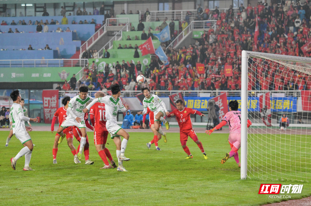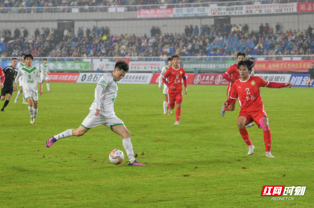 比赛开场即陷入胶着。第12分钟,郴州队“核武7”王博禁区内左脚劲射破门,率先打破僵局。上半场郴州队以1:0比分暂时领先岳阳队。下半场,岳阳队为了扳平比分,继续保持高强度进攻。经过多次进攻后,岳阳队终于抓住机会,第87分钟,岳阳队定位球开出,8号余骞禁区内接球后,一脚抽射破门,1:1扳平比分。补时阶段,双方互有攻守,但都是无功而返,最终双方1:1战平。