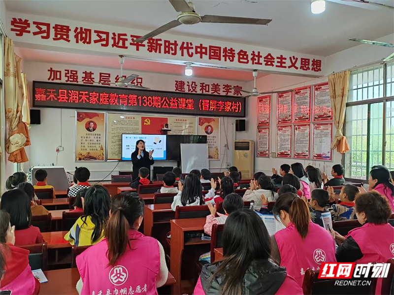 刘红花在嘉禾县“润禾”家庭教育公益课堂开展讲座。