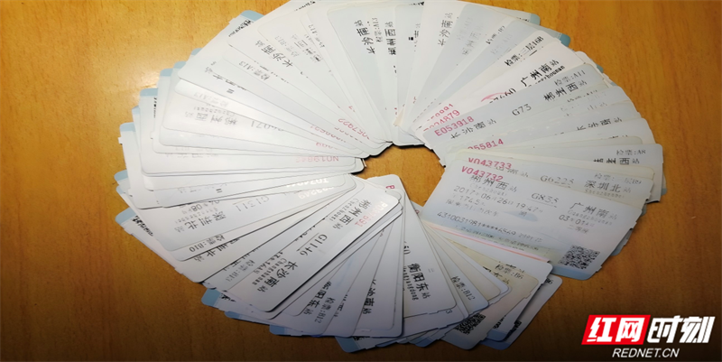 刘红花利用休息时间自费参加培训的部分车票。