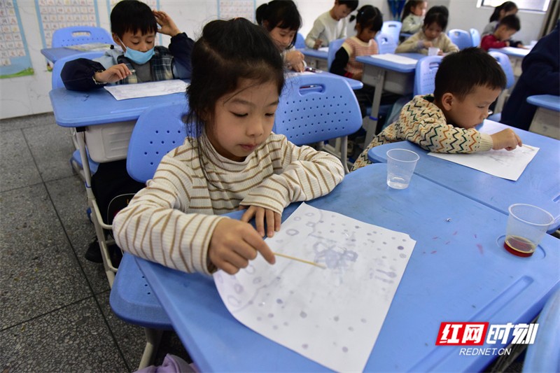红网时刻新闻11月28日郴州讯(通讯员 贺茂峰 周锦)11月27日,郴州市王仙小学,大学生志愿者向学生演示碘遇上维C的神奇变化。当天,湘南学院化学系大学生志愿者走进小学校园,联合举办科技节活动。