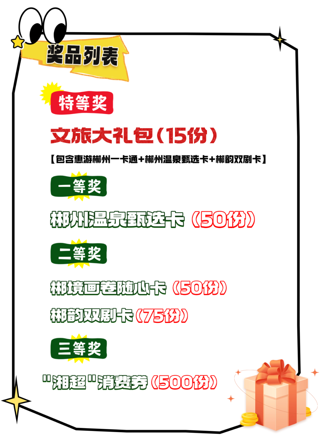 所有奖品将在您中奖后的24小时内,自动发放至您的【郴心游】小程序账户中。