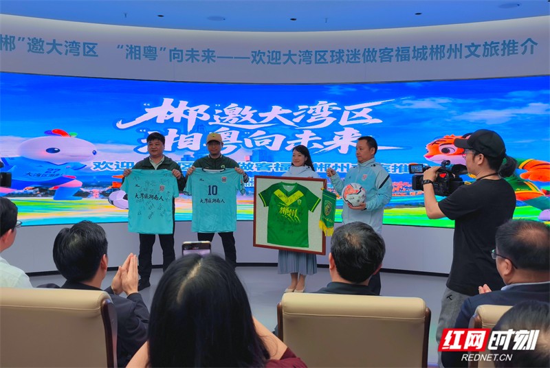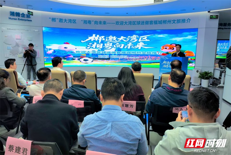 红网时刻新闻12月24日郴州讯(通讯员 郑翔)2026年1月2日,湘超郴州队将坐镇主场,与大湾区湖南人队展开足球邀请赛的精彩对决。12月24日,由郴州市人民政府主办,郴州市文化旅游广电体育局承办的“郴”邀大湾区·“湘粤”向未来——欢迎大湾区球迷做客福城郴州文旅推介活动在深圳举行,诚邀大湾区的朋友们走进郴州,赏碧水丹霞,为绿茵赛场的呐喊助威。
