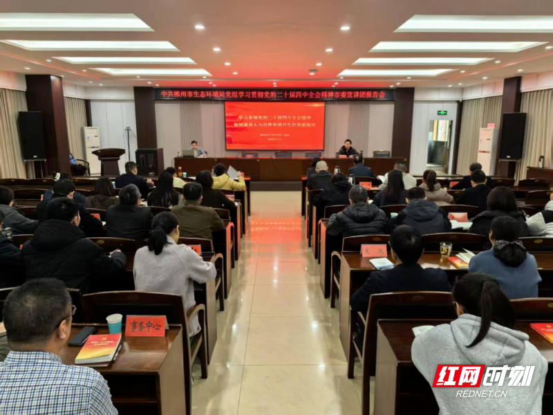红网时刻新闻12月25日郴州讯(通讯员 刘洋 刘珈利)12月23日下午,学习贯彻党的二十届四中全会精神市委宣讲团报告会在郴州市生态环境局召开,市委宣讲团成员、市生态环境局党组书记、局长谢昆作宣讲报告。局领导班子成员、副处级以上干部,各科室、直属单位全体干部职工参加会议。