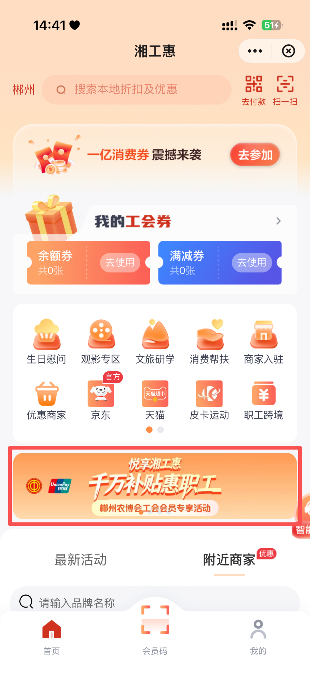 点击进入【悦享湘工惠 千万补贴惠职工】