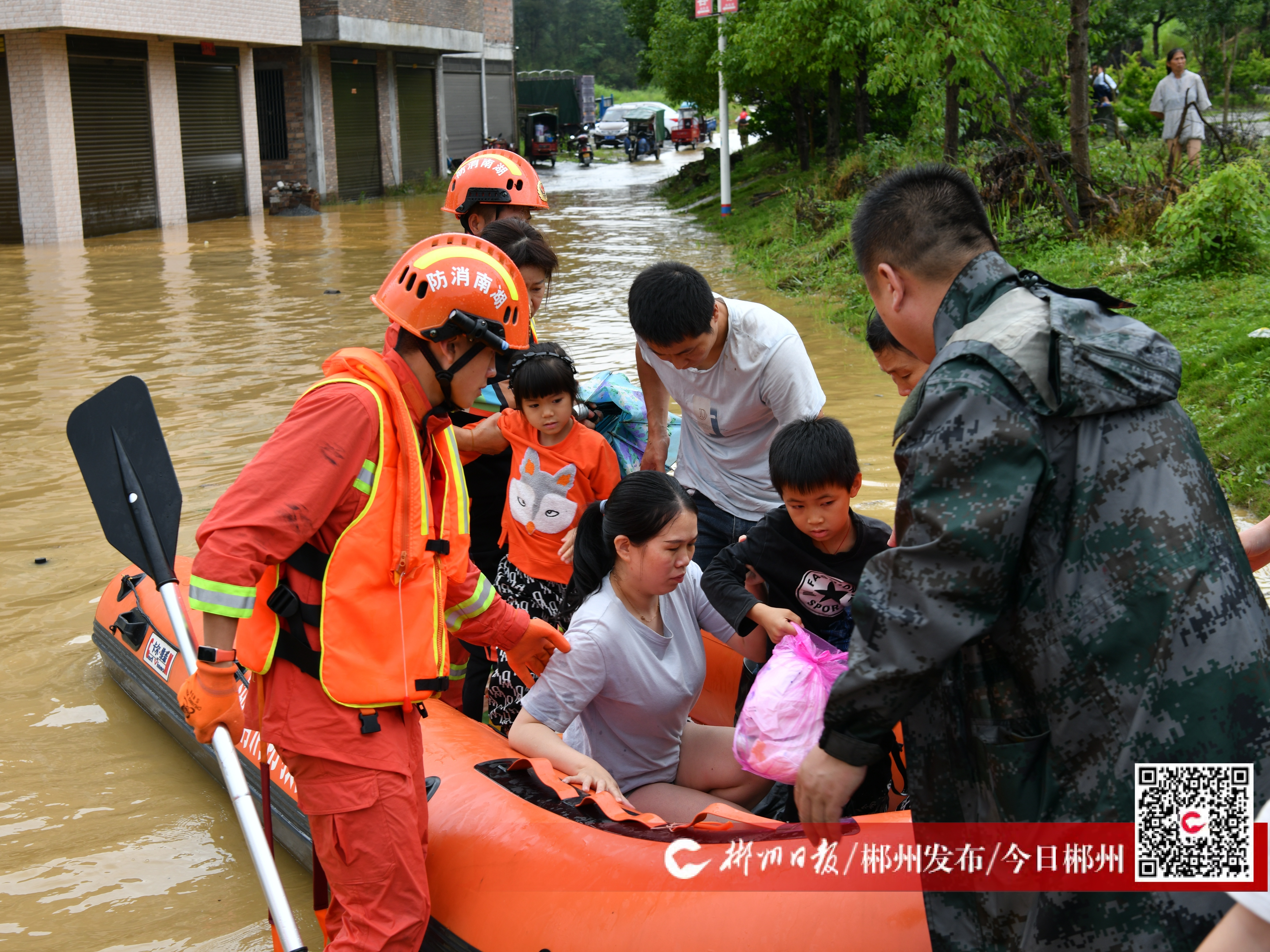 浙水河洪流奔涌,河畔村庄积水未退,岸上救援人员匆匆吃着盒饭……6月4日下午,一场暴雨过后,汝城县卢阳镇新廖村七组廖家湾,抗洪救灾现场一片繁忙。